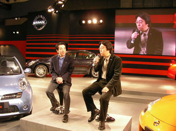 スカイラインとはぜんぜん関係ないけど、カトーさんとユカワ先輩の対談。もっと面白いことしゃべって欲しかったな。ボクが引き出し役やったら、会場、爆笑させたのに。Z33の07モデルお披露目やったから、笑いは必要ないだろうけどね。