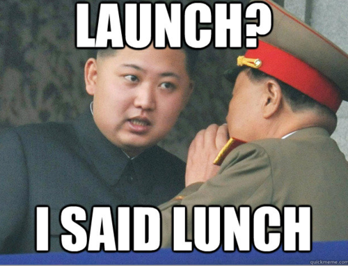 「ラウンチ(発射)?」、いやっ「ランチ(昼食」です」という軍部と金正恩のやりとりをバカにした写真がネットに出回っていました。