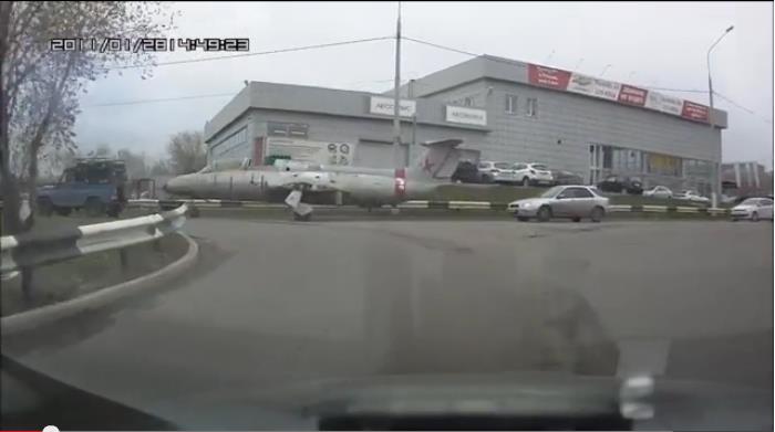 When they’re not flying dangerously close to traffic, Russian fighter jets can sometimes be found in…traffic. The lack of full-span wings leads us to believe that the airplane didn’t…run out of fuel…