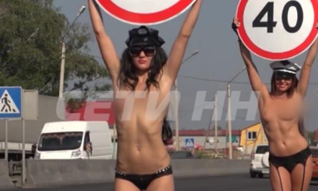 Sex Sells and marketing people know it as a fact. But there are feminists who oppose to that idea and voice their criticism every now and then. And in Russia, they brought in topless beautiful young women on the road with speed signs, urging drivers to slow down.