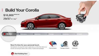 ただ・・・、トヨタ・アメリカのミスは痛恨・・・、ってか、ホント・・・、エンジンなんてどーでもイイというスタンスが見え隠れするような?????(笑)。「Build your Collora」(自分のカローラを作ろう)というセクションがカローラ用ウェブページ最下部にあるんですが、カローラの後ろに映る大きな手をご覧ください。